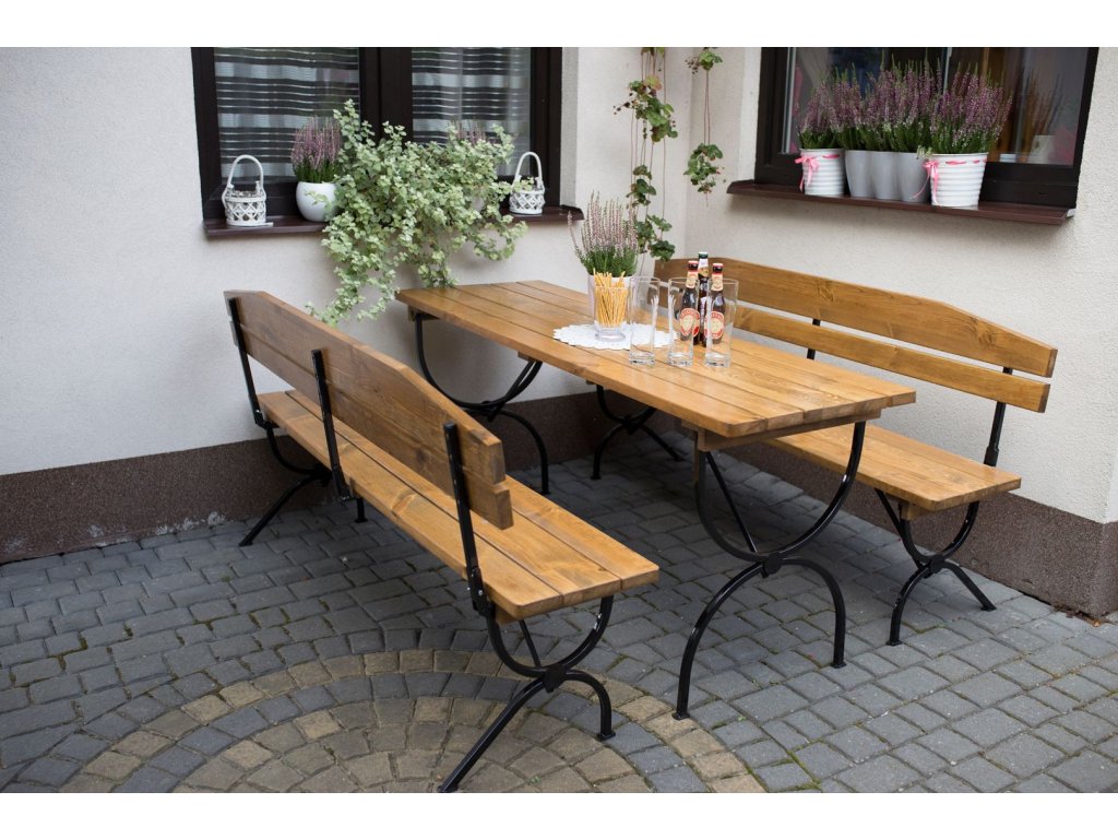 Elegáns fa sörpad garnitúra DE LUX II 180 cm. Elegáns fából készült kerti DE LUX II sörkészlet. Nagyon szép és elegáns kerti garnitúra a kertben eltöltött kellemes pillanatokért. Ez a kerti készlet összecsukható lábakkal rendelkezik, ezért könnyen tárolható.