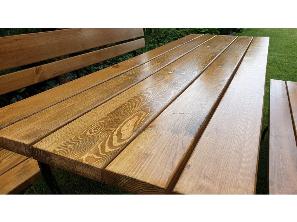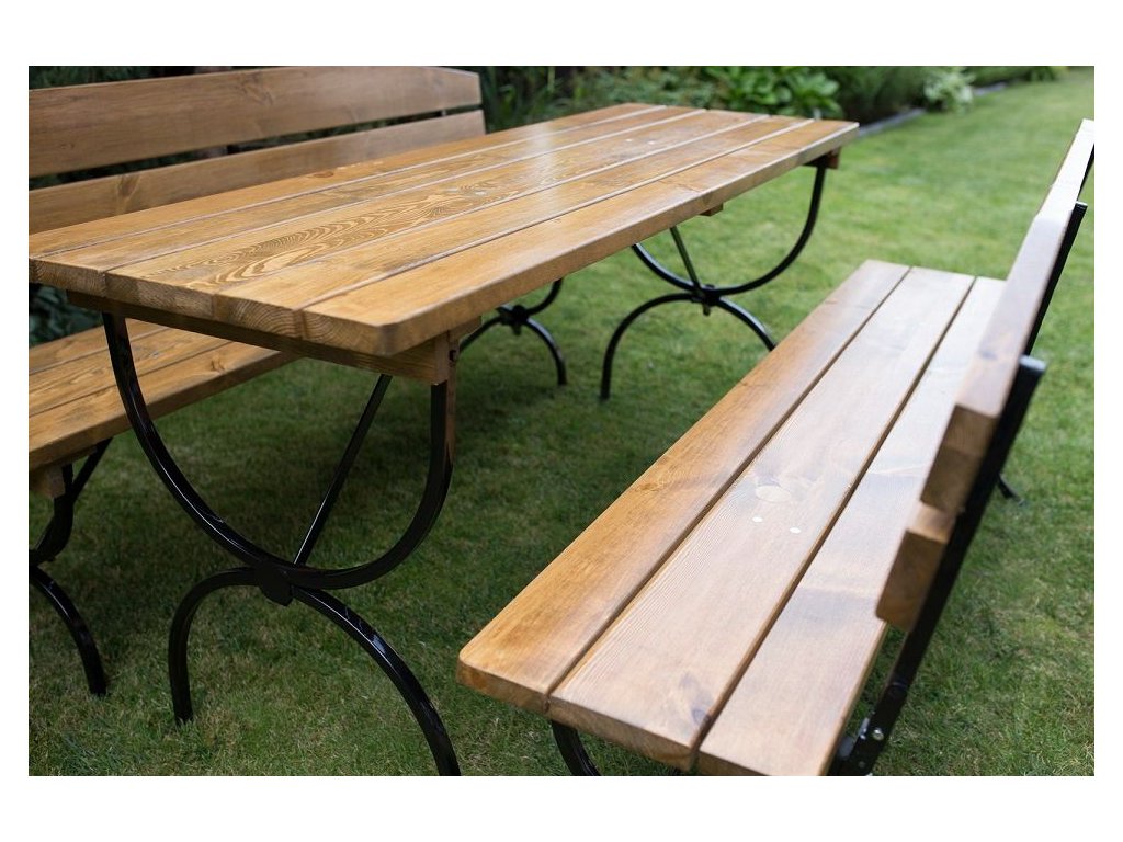 Elegáns fa sörpad garnitúra DE LUX II 180 cm. Elegáns fából készült kerti DE LUX II sörkészlet. Nagyon szép és elegáns kerti garnitúra a kertben eltöltött kellemes pillanatokért. Ez a kerti készlet összecsukható lábakkal rendelkezik, ezért könnyen tárolható.