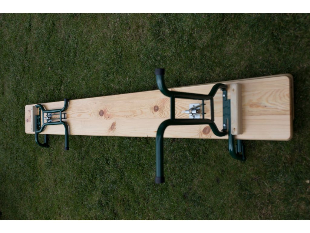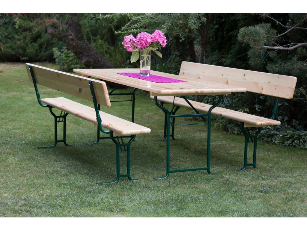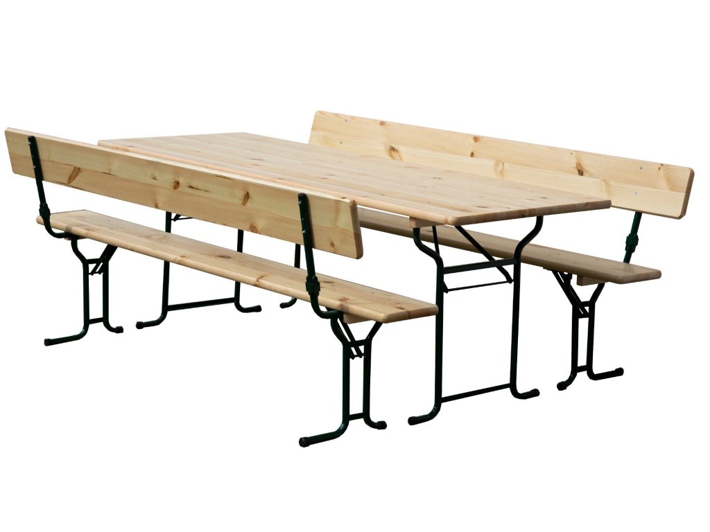 Széles asztalból és két háttámlás padból álló készlet. Az asztal és a pad lábai hajlított cső profilból ("O" profil) készültek. Ezáltal nagyon kényelmes ülést biztosít, ezért a legjobb kínálatunk közé tartozik. A lábak műanyag zárókupakkal vannak ellátva. Az asztal, a padok és a háttámlák összehajthatók, így ez a sörkészlet könnyen tárolható.
