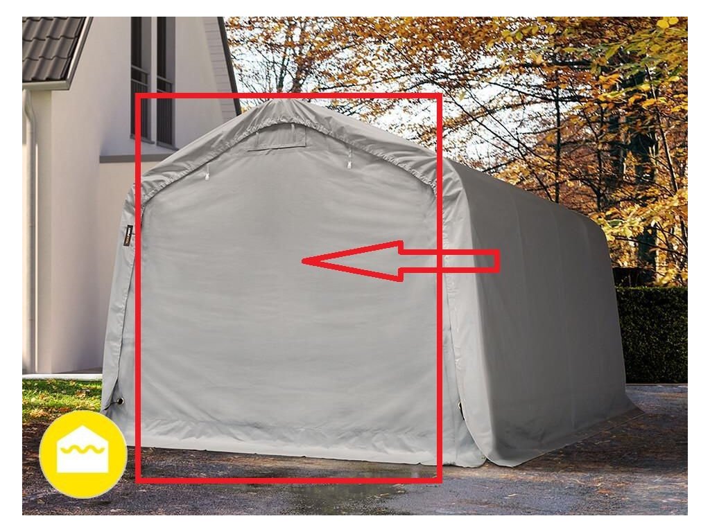 Külön bejárati ponyva Tartós és erős PVC ponyva 720g/m2 HD vastagsággal Nem gyúlékony anyagból készült Nagy ajtó - praktikus tekerhető ajtó Nagyon erős és tartós cipzárak a bejáratnál 3,3 x 4,8 m, 3,3 x 6,2 m, 3,3 x 7,2 m, 3,3 x 9,6 m méretű garázsokhoz használható A csomag tartalma pótalkatrész: egy különálló főoldali ponyva - 1 db