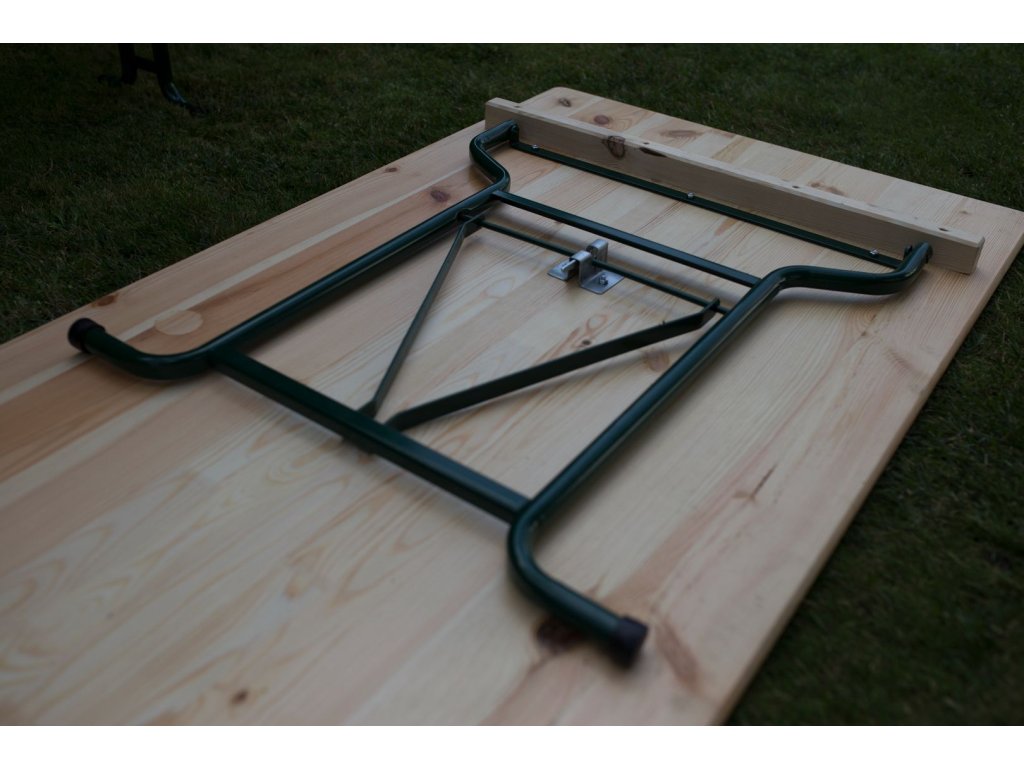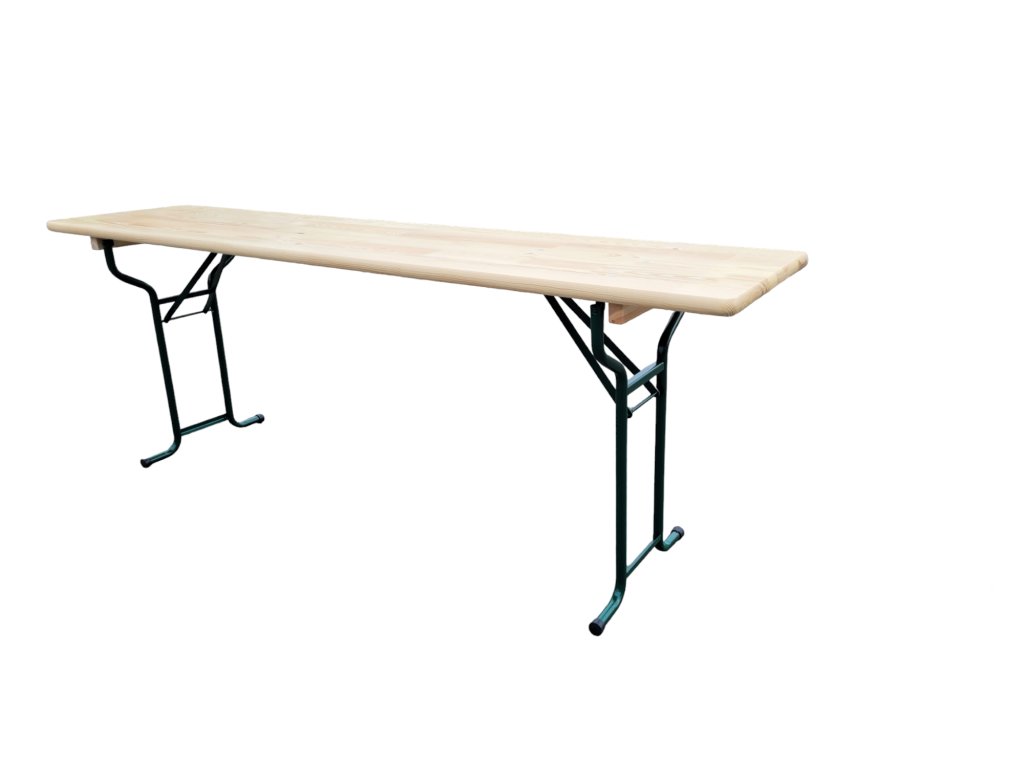 Fából készült összecsukható pad Kényelmes összecsukható fapad. Hajlított csőprofil a kényelmes ülésért. A pad hossza 220 cm.