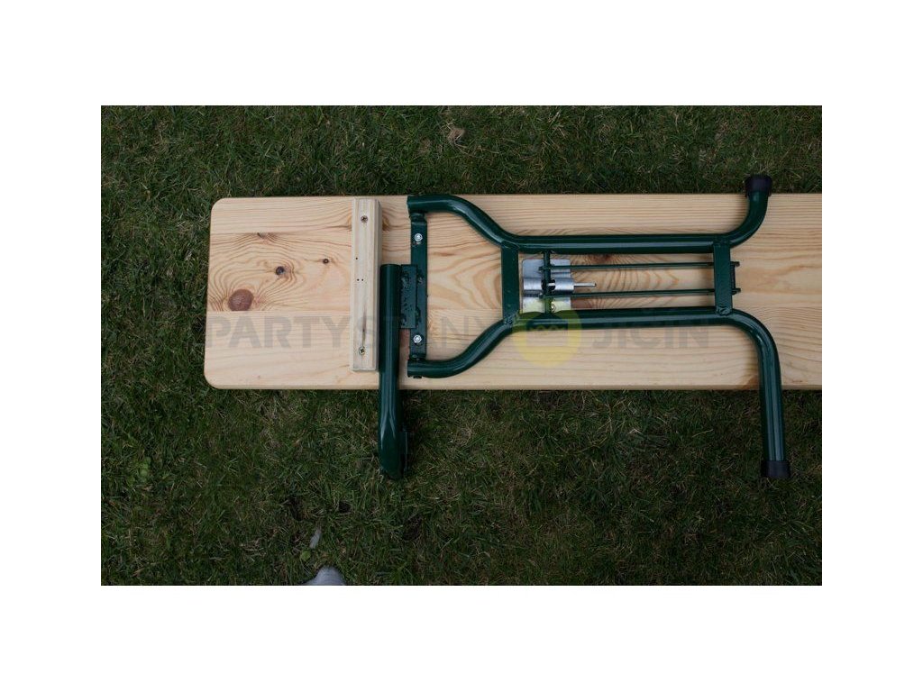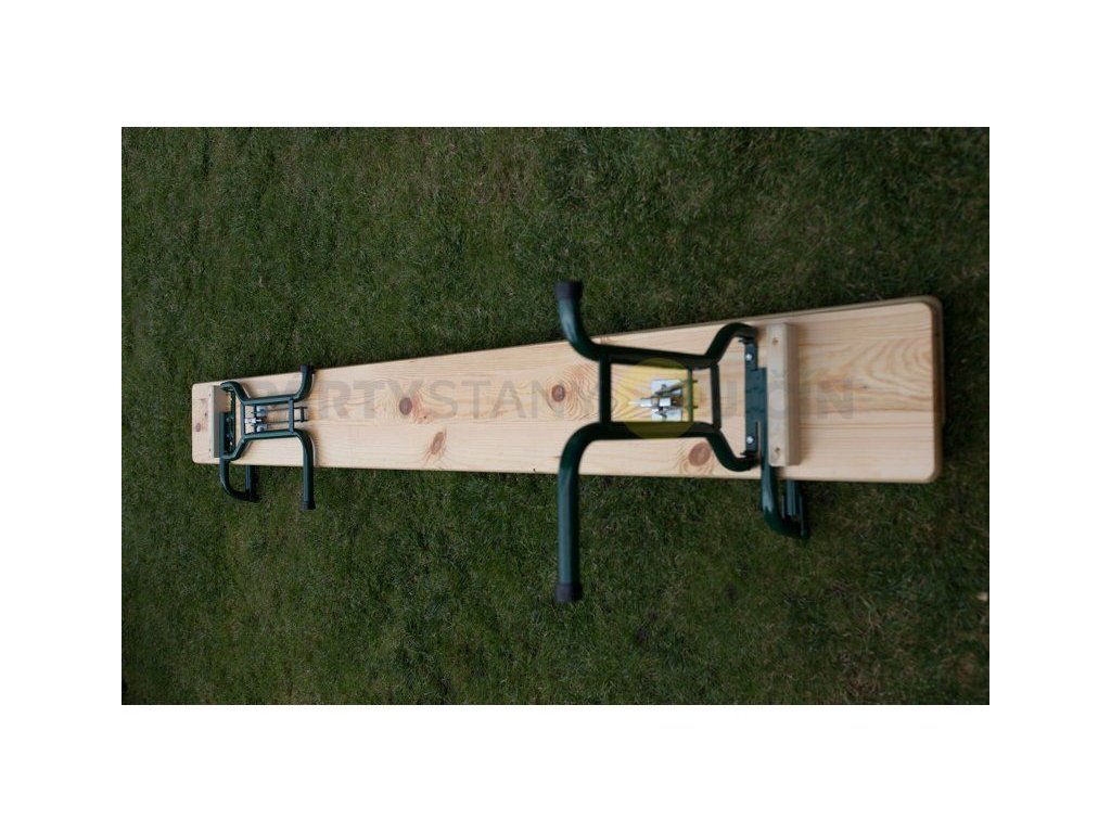 Hajlított "O" profilú vasalat a kényelmes ülés érdekében. Összecsukható kerti pad sörpad garnitúrához. Ezek a padok külön is megvásárolhatók, és ideálisak nyári rendezvényekre, ünnepségekre, bemutatókra és hasonló eseményekre. A háttámlának köszönhetően kényelmesen hátra lehet dőlni. A pad összecsukható és könnyen tárolható, mivel a lábak és a háttámla lehajtható.