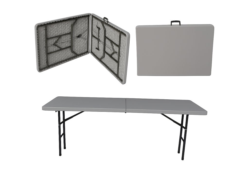 Kiváló minőségű összecsukható vendéglátóipari asztal - 152 cm Alkalmas vendéglátásra, kertészkedésre, partikra és ünnepségekre, esküvőkre stb... Beltéri és kültéri használatra Könnyebb és tartósabb, mint a hagyományos asztalok Könnyen összecsukható, mégis nagyon stabil, nagy teherbírással Beépített fogantyú a könnyű hordozáshoz összecsukva A szerkezet 28 és 19 mm átmérőjű acélcsövekből készül. Az asztallapok nagy szilárdságú HDPE anyagból készültek Asztal teherbírása kb. 200 kg a teljes felületen Méretek: 152x75x74cm, összecsukva 76x75x9cmKiegészítő paraméterek