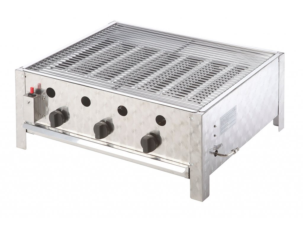 Teljes műszaki leírás RASCAL professzionális grill (ráccsal) Rozsdamentes acél, termoelem, piezo, 3 égő tartozék 5kg-os és 10kg-os palack csatlakoztatásához Teljesítmény: 10kW Méret: 70x56x25,8cm Súly: 20,5kg Fogyasztás: 728g/óra