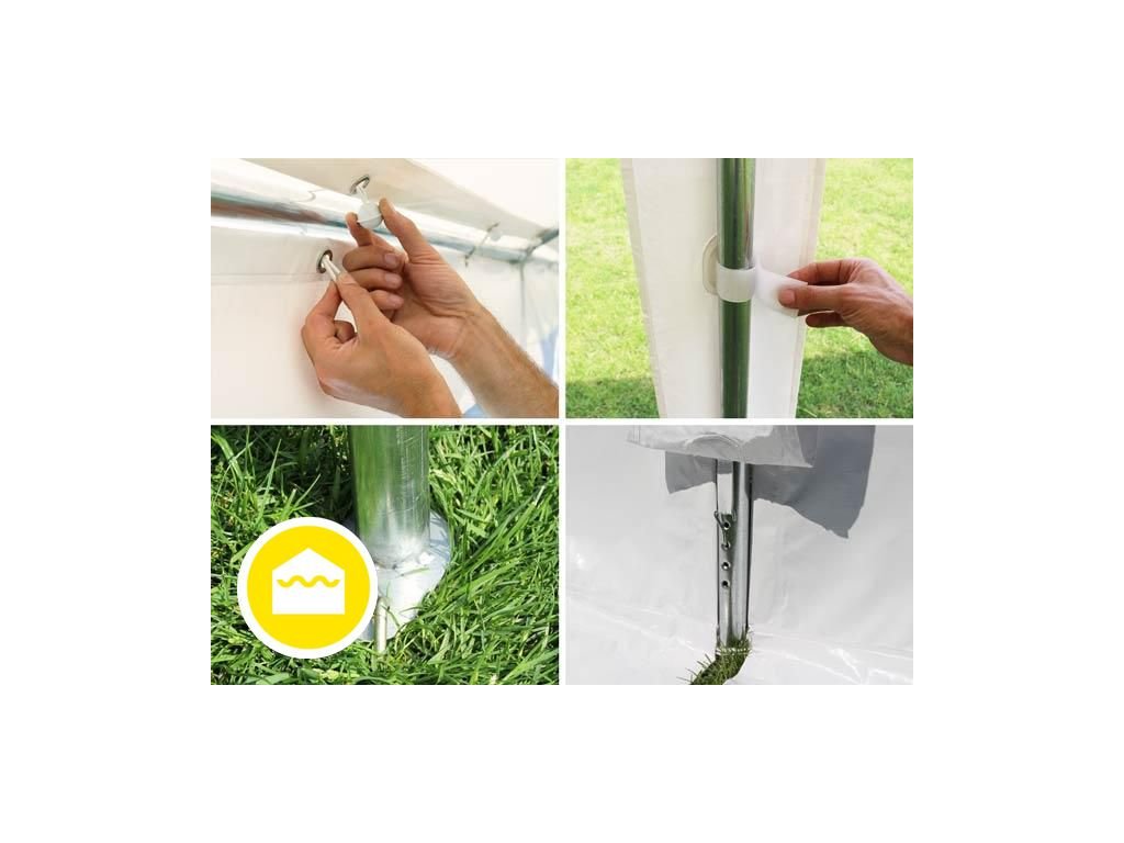 => rendelhető teljes oldalsó ponyvákkal, ablakok nélkül vagy vegyes oldalponyvákkal = válassza ki az opciót - A sátor acélváza 38 mm átmérőjű horganyzott csövekből áll, falvastagsága kb. 1,1 mm